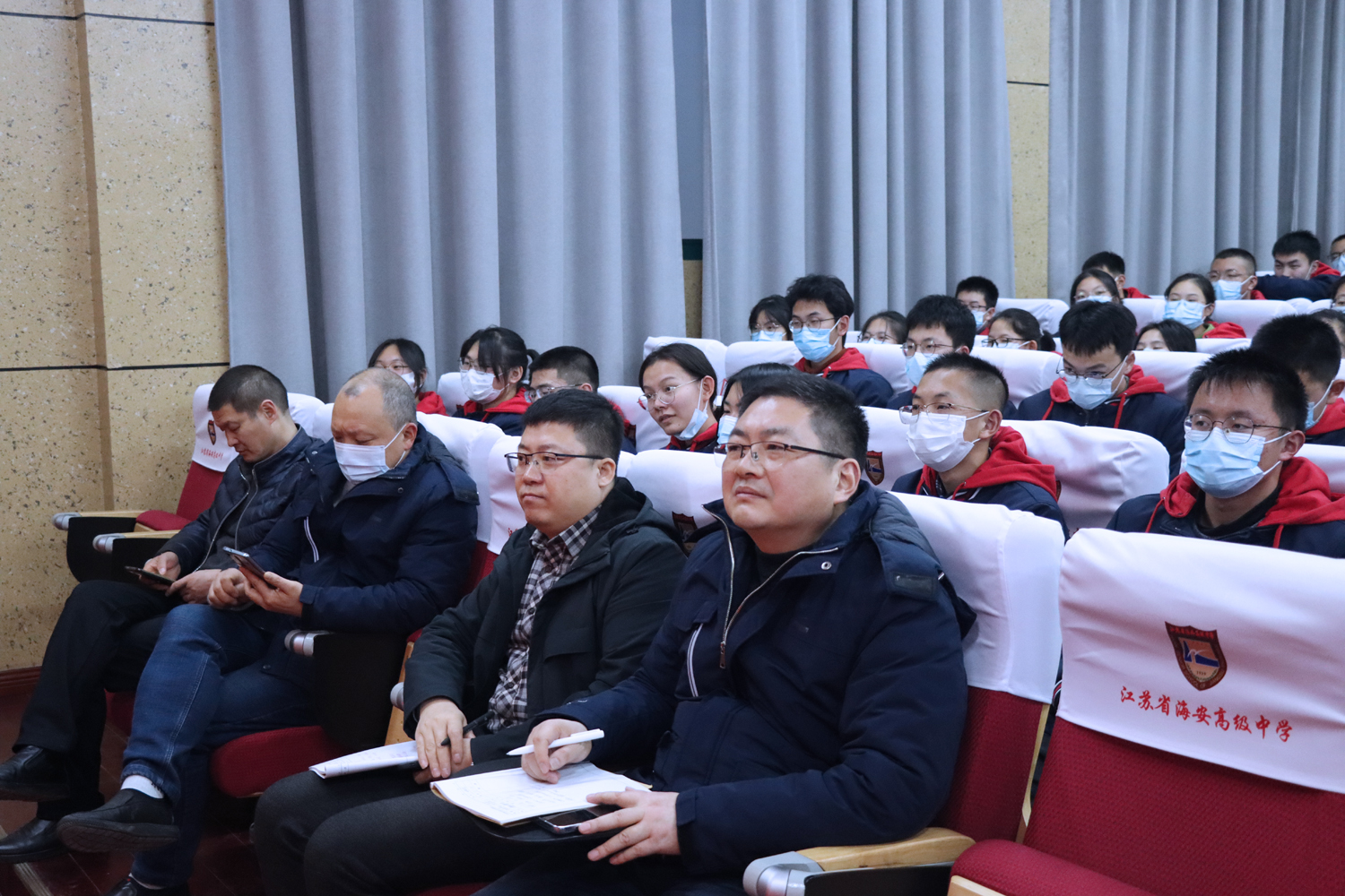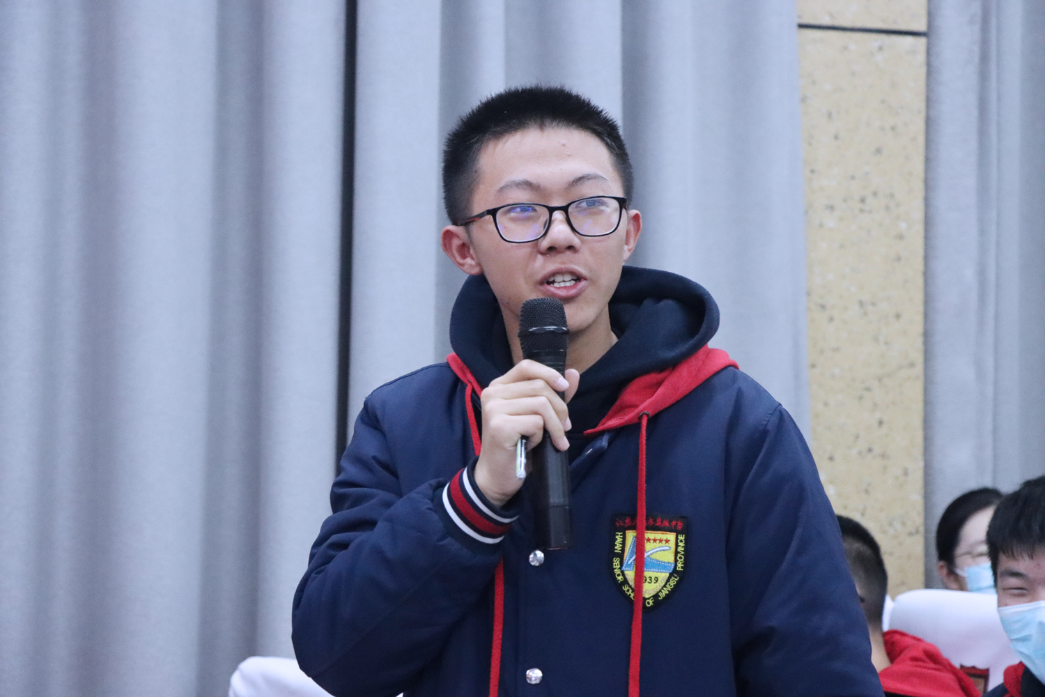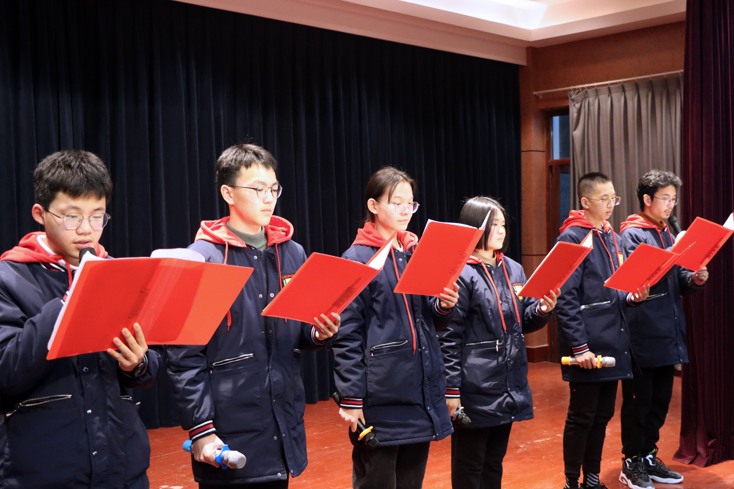 2022年2月27日晚,高一(6)班在奥林匹克楼博雅小剧场举行了“青春有梦 强国有我”主题班会。学校校办主任刘建东、教务处副主任田光宇及各班班主任、学生会宣传部干事、“四自”委员、学生代表、家长代表观摩了此次活动。本周“四自”督查小组相关同学进行了志愿引导和评价记录工作。