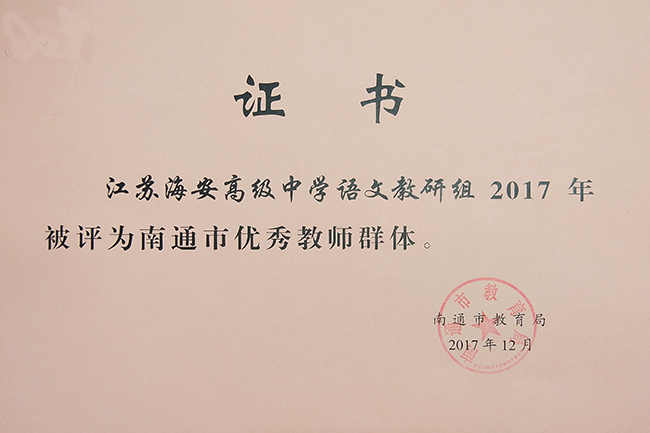 祝贺我校语文教研组2017年被评为南通市优秀教师群体