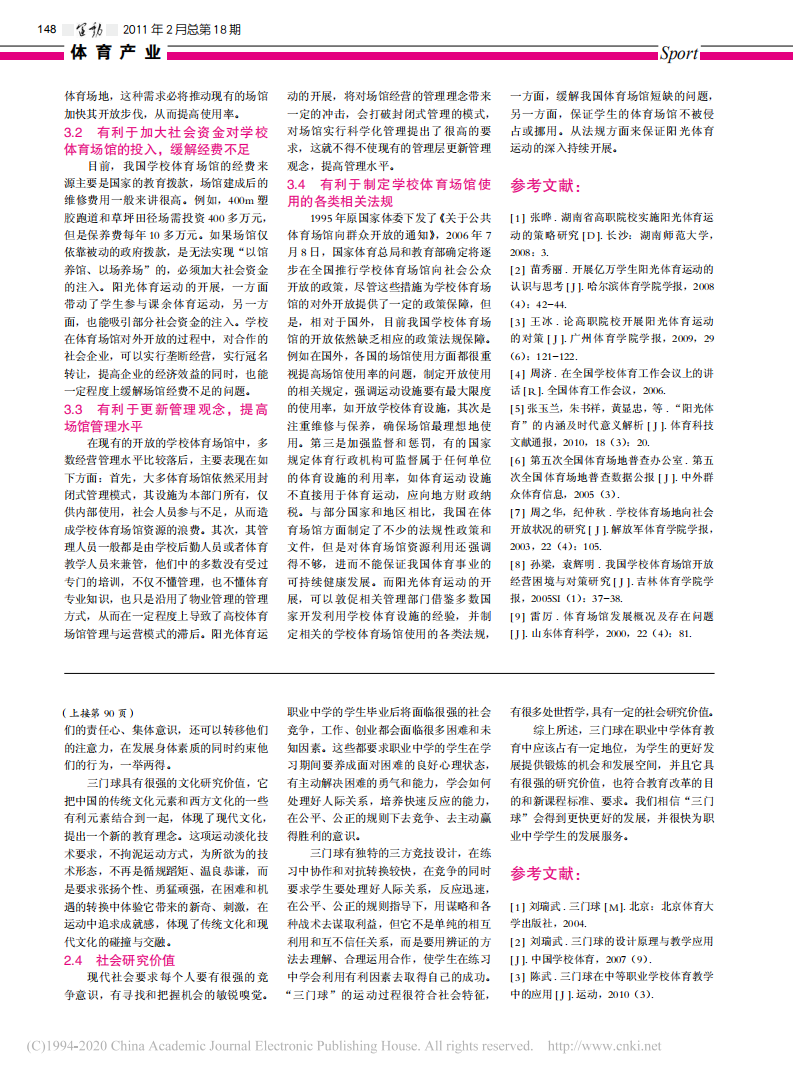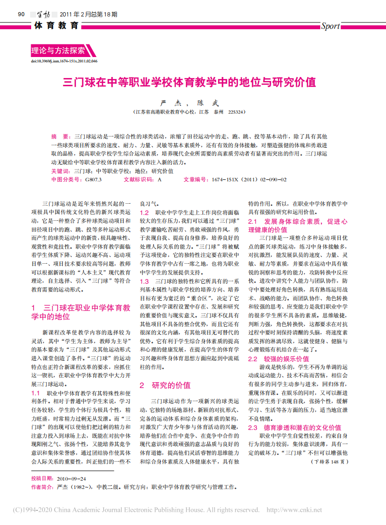 三门球在中等职业学校体育教学中的地位与研究价值
