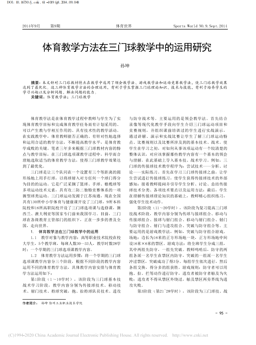 体育教学方法在三门球教学中的运用研究