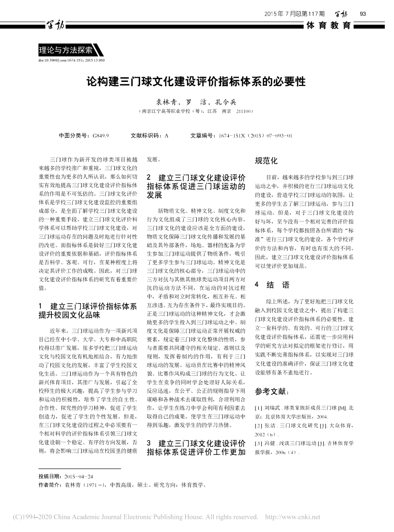 论构建三门球文化建设评价指标体系的必要性