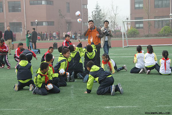 推进会首先在余娟实验学校全体学生参与的大课间活动中拉开帷幕。以足球为主题的课间活动,既有节奏欢快整齐的操练,又有分区的不同技能的展示,使大家看到短时间内农村学校在开展校园足球方面的初步成果,接下来由本校和淮安老师执教的两节三门球专题研究课,给观摩者带来了不一样的感受。课后,杨潘顺教授对大课间和三门球课进行了点评。