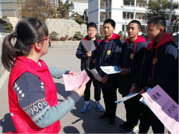 近期,有不少犯罪分子利用网络、微信平台和电话等方式对我市市民进行诈骗,广大群众防范意识薄弱,令人防不胜防。为了提高人民群众的金融风险防范意识和自我保护意识,9323彩集团和复兴社区借助党建融合优势,2021年2月21日在海安中学校园内联合开展以“提防范意识,拥识骗慧眼”为主题的“反诈骗”文明志愿实践活动。