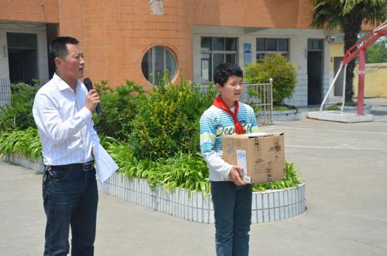 2014年5月14日中午,继去年我校在海安县丹凤小学、海北小学建立海中爱心图书室之后,我校团委负责人和部分社团指导老师及学生会成员,带着同学们爱心义卖募得善款所购买的图书再次来到这两所学校,为农村小学的小朋友们继续带去海中学子奉献的精神食粮。
