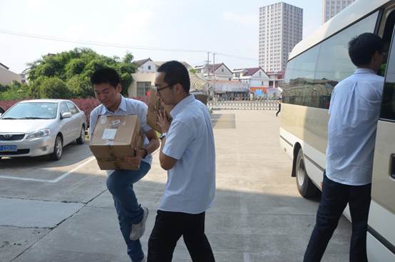 2015年9月18号下午,我校女工委史慧敏主任、团委罗湘军书记、许尧老师及学生会部分成员带着全校同学在爱心义卖中筹集善款所购得的图书,来到海安县开发区小区、海北小学、丹凤小学三所农村小学捐献图书。