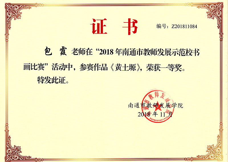海安中学体艺组包霞老师、刘同银老师在南通市教师发展学院主办的南通市教师发展示范校书画比赛中,取得优异成绩。包霞老师作品《黄土塬》荣获一等奖,刘同银老师作品《老街》荣获二等奖。