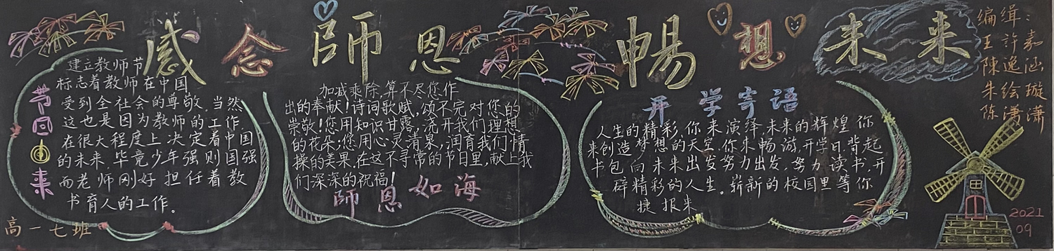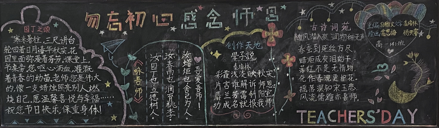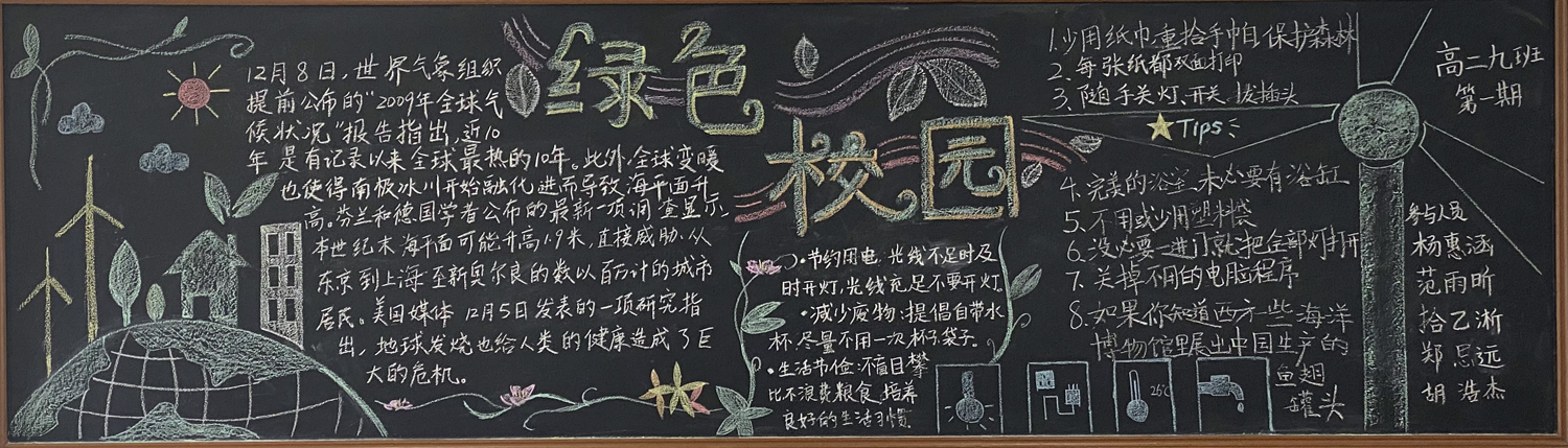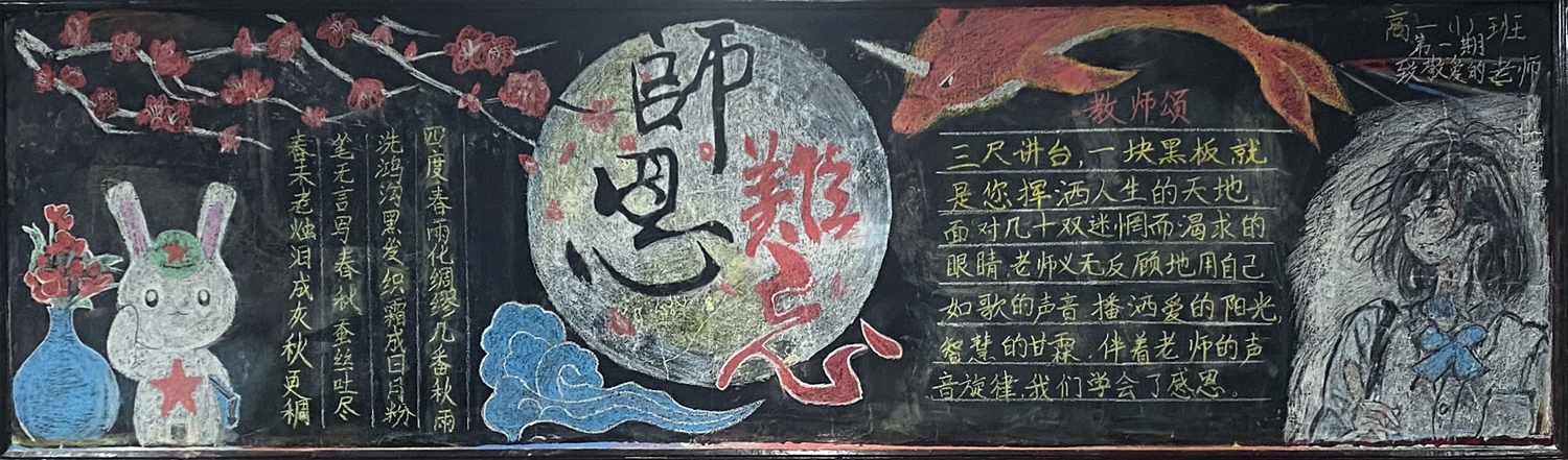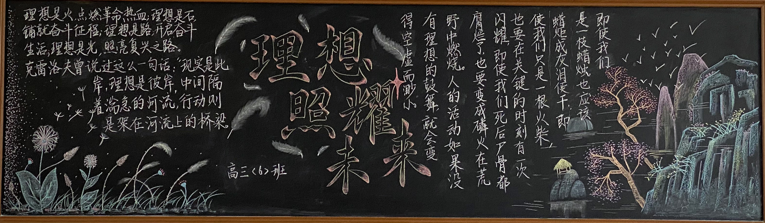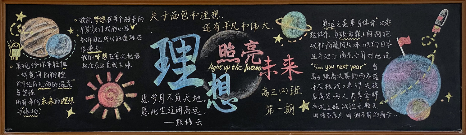新学期伊始,为进一步做好学校文化建设和班级文化建设,我校高一年级以“感念师恩”,高二年级以“节能降碳绿色校园”,高三年级以“理想照亮未来”为主题开展黑板报评比活动。