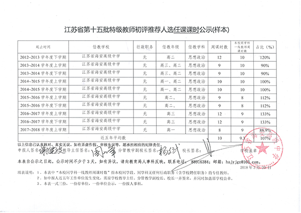 根据市教育局《关于做好江苏省第十五批特级教师评选推荐工作的通知》(通教人师〔2018〕5号)文件精神和县教育局《关于做好江苏省第十五批特级教师推荐工作的说明》文件要求,经个人申报、学校研究,拟确定谢健波、李勤等2位同志为江苏省第十五批特级教师推荐人选。