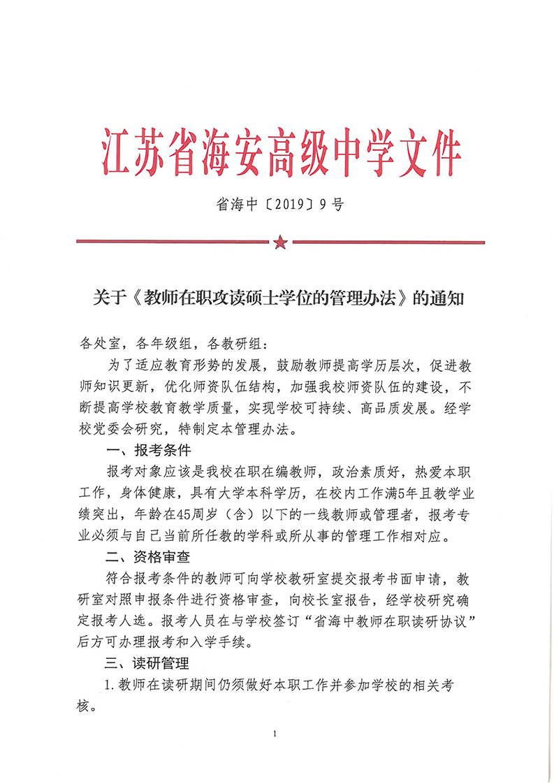 关于《教师在职攻读硕士学位的管理办法》的通知