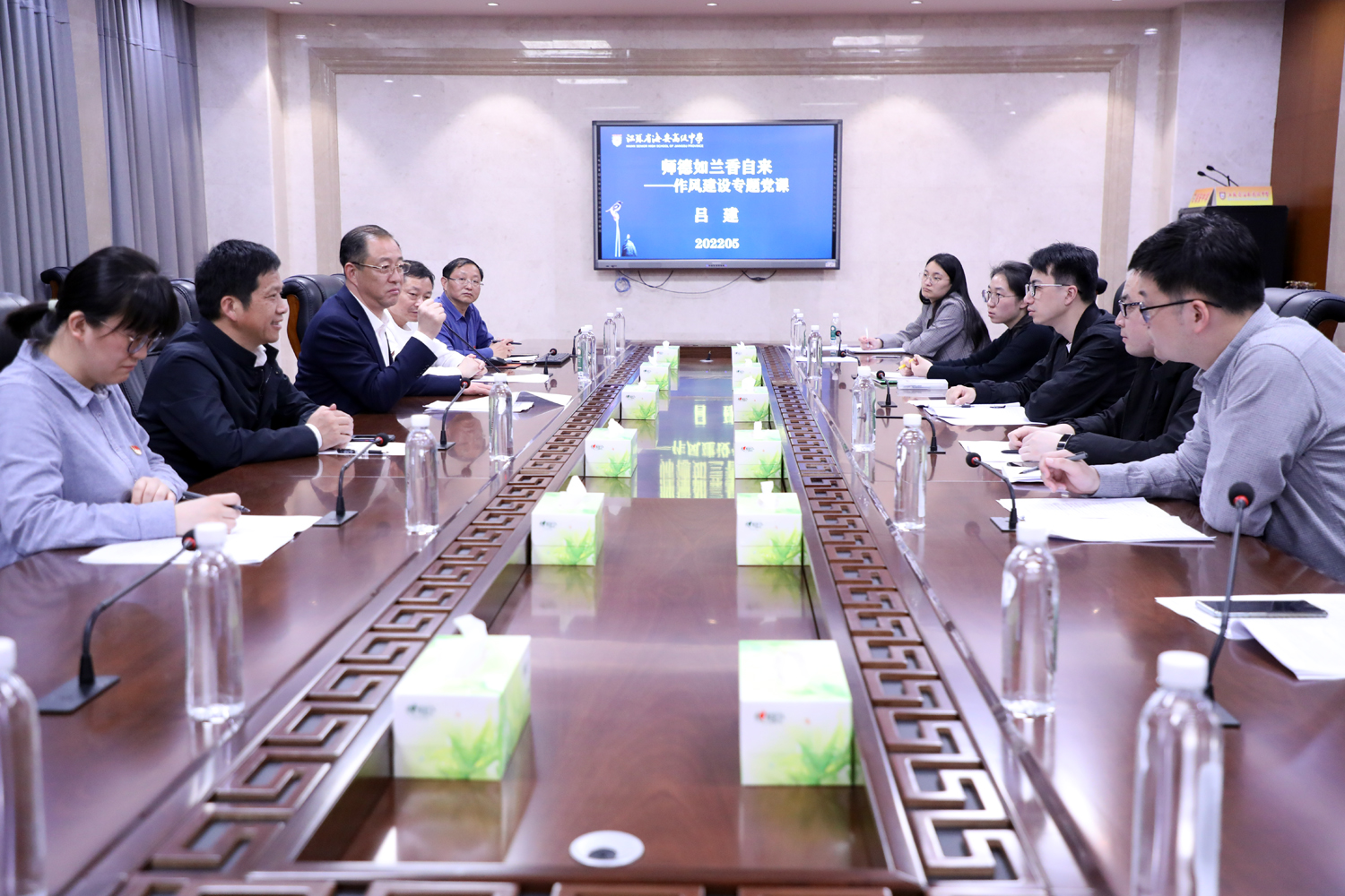 学校党委书记、校长吕建同志给青年教师上题为《师德如兰香自来》的作风建设专题党课。
