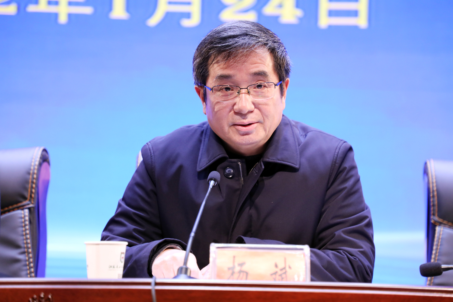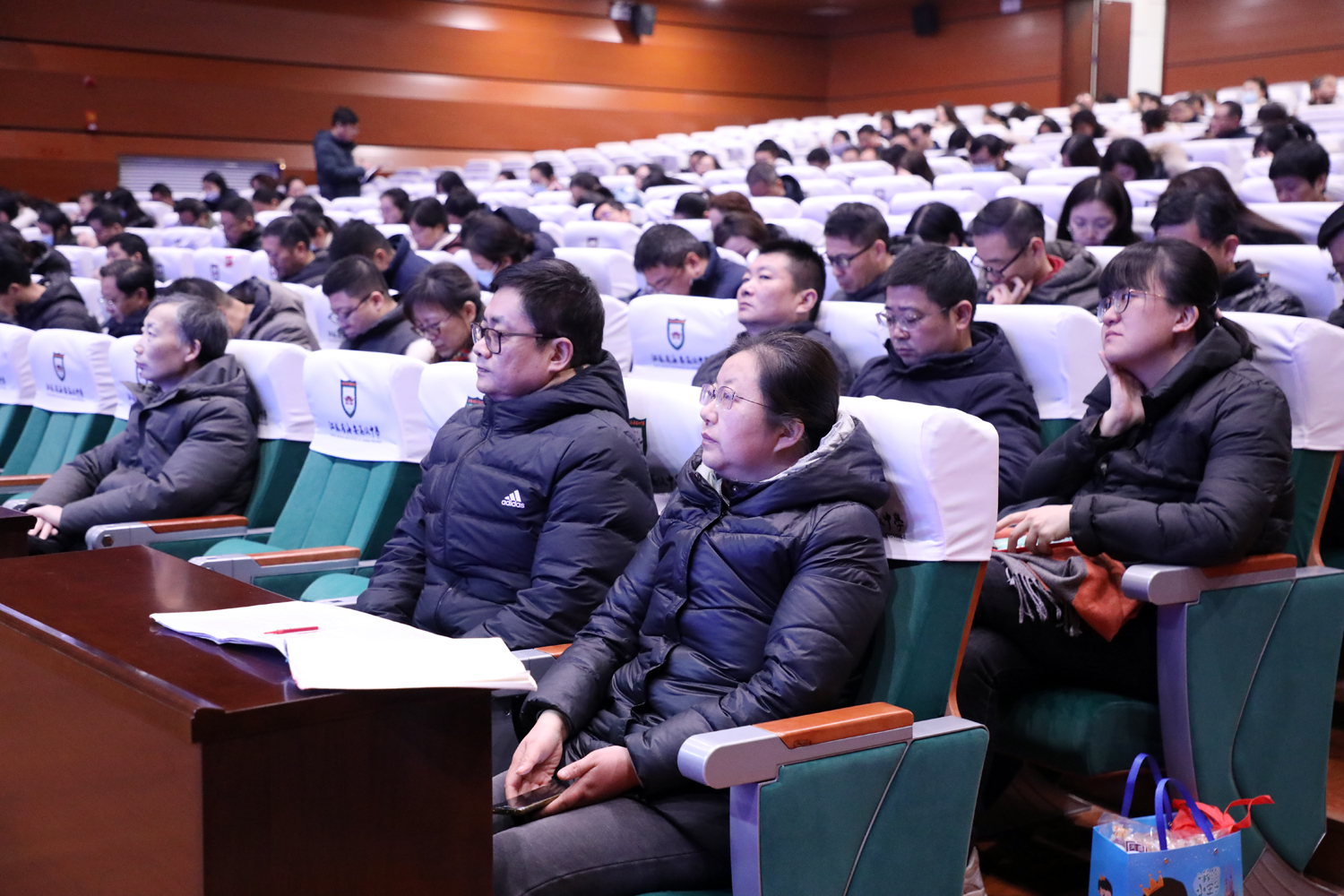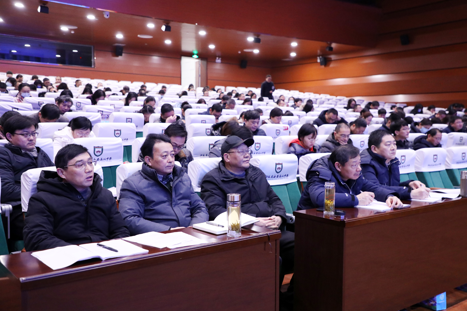 日月其迈,岁律更新。2022年1月24日上午,海安中学全体教职员工在学生艺术中心博雅剧场召开2021~2022学年度第一学期期末总结大会。学校党委书记、校长吕建作学期总结报告。副校长杨斌主持总结大会。