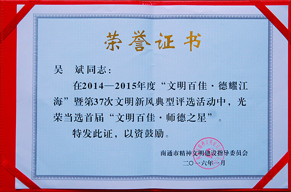 我校吴斌老师当选市“十佳师德之星”
