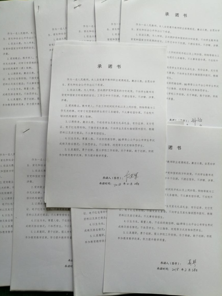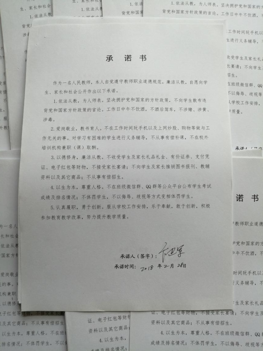 海安中学师德师风承诺书