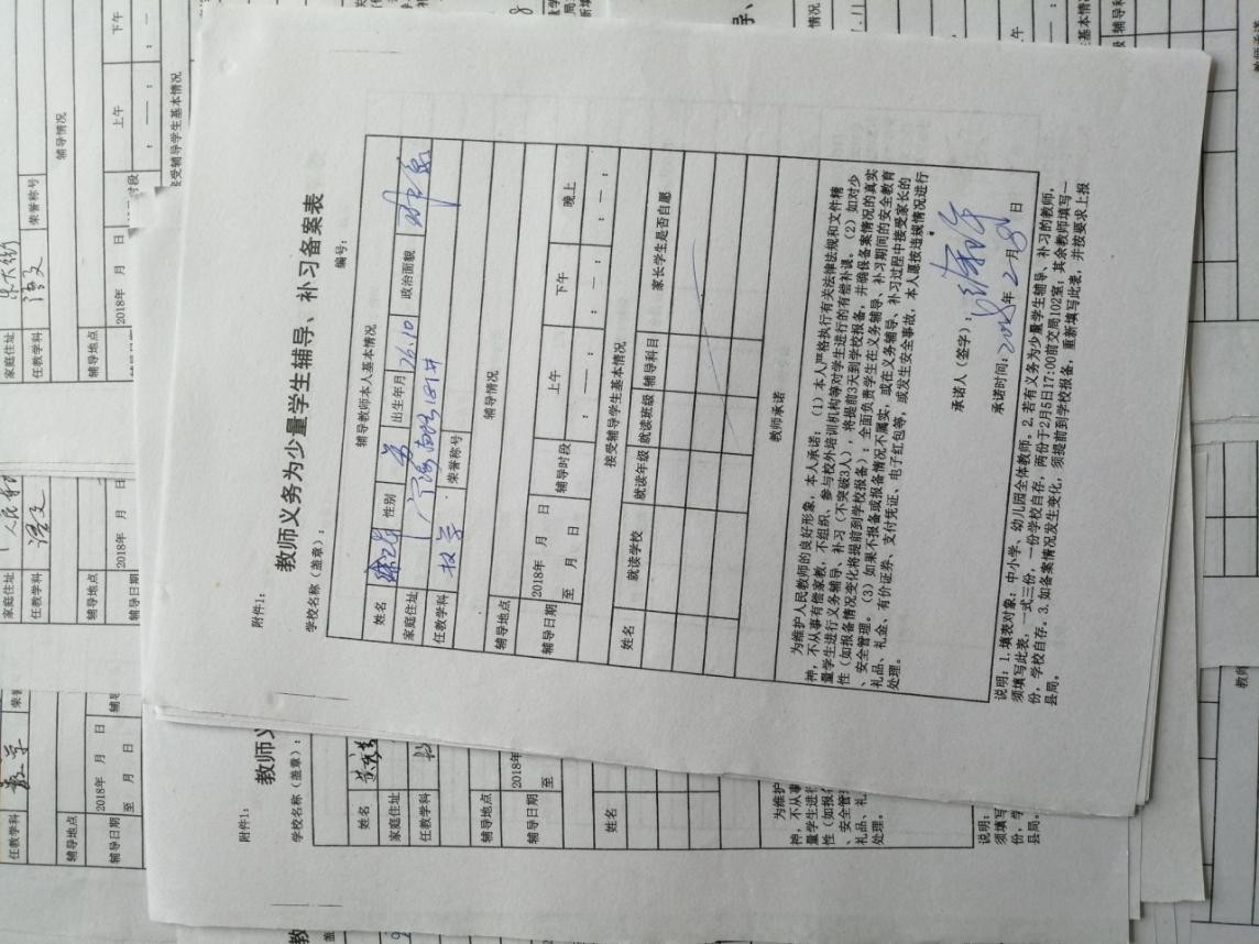 海安中学教师义务为少量学生辅导、补习备案表