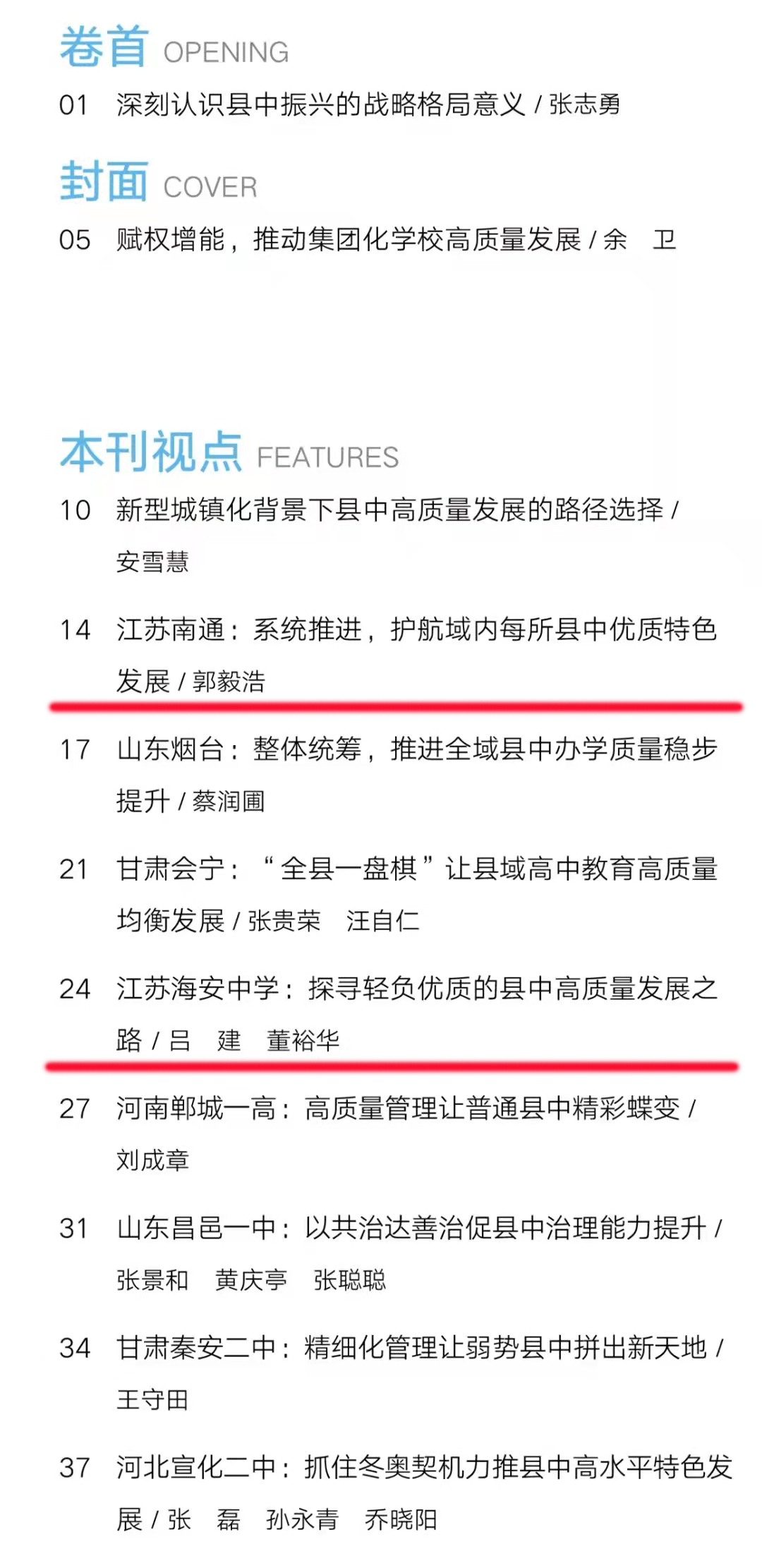 2021年年底,教育部、国家发改委、公安部、财政部、人社部、自然资源部、住建部、税务总局、医疗保障局等九部门共同发文,决定实施“十四五”县域普通高中发展提升行动计划。今年的教育部工作要点中再次强调要加强县域普通高中建设,实施“十四五”县域普通高中发展提升行动计划。南通在教育均衡方面一直处于全国领先位置,下辖的每个县市区的普通高中都有很强的实力,我校在县中高质量发展中也形成了自己独特的发展样态,受到社会的广泛关注。全国中文核心期刊《中小学管理》杂志2022年第2期聚焦县中振兴问题推出系列文章,介绍部分地区和学校的先进做法。南通有两篇文章:一是市教育局党组书记、局长郭毅浩以《江苏南通:系统推进,护航域内每所县中优质特色发展》为题,从地方治理角度介绍南通地区县中高质量发展的区域布局;二是我校党委书记、校长吕建和党委副书记、副校长董裕华撰写的《探寻轻负优质的县中高质量发展之路》,从校本实践角度介绍县中优质特色发展的先驱探索。