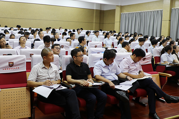 最后,董裕华副校长就学校主题班会工作做了专题辅导。他从“班会的目的”“班会存在的主要问题”“班会的传承与发展”三个方面对新学期主题班会工作作了指导,提出了明确的要求。他指出:“做阳光高中生”主题班会活动是海中传统特色项目,也是海中“阳光高中生”品格提升工程的重要组成部分。班主任要指导学生上好每一节班会课,求实效,重创新,丰富校园文化生活,促进学生能力提升,为学生的终身发展奠基。
