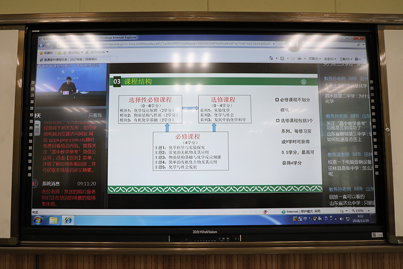 11月29日上午9:00“普通高中化学课程标准”网络培训正式开始,本次培训面向全国高中化学教师,规模较大。在校领导高度重视,化学课程标准责任编辑李俊讲解,教师们积极参加下,整个网络培训取得了圆满成功。