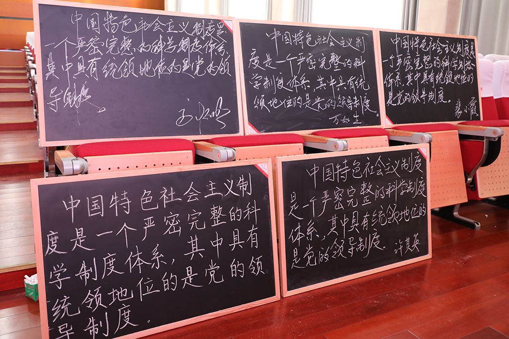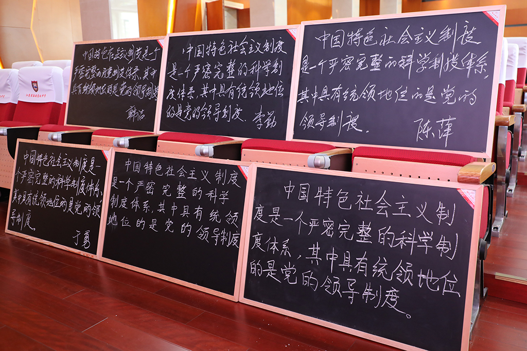 首先进行了粉笔字书写比赛,政治教研组全体老师现场完成了规定内容的粉笔字书写。
