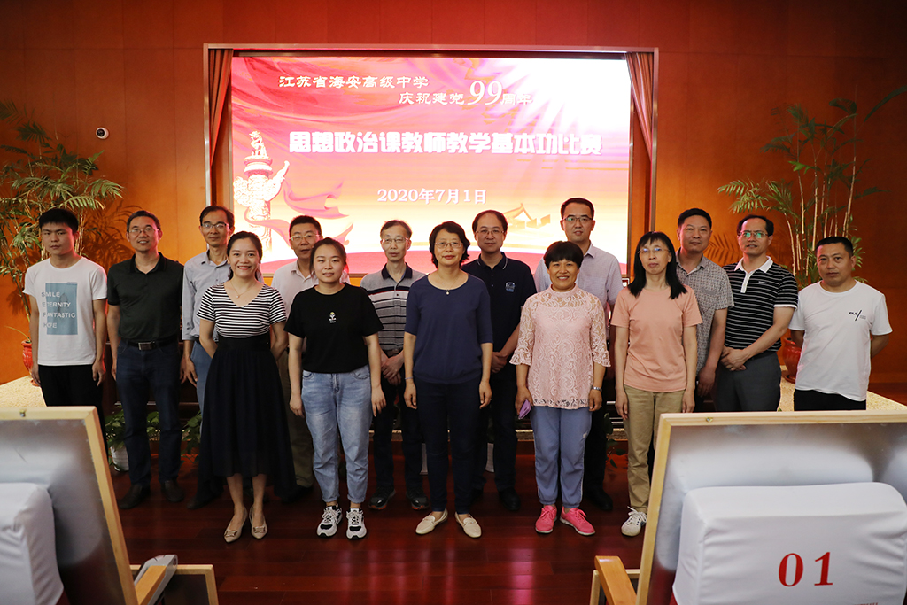 为庆祝中国共产党建党99周年,进一步推进社会主义核心价值观教育,提升思政课教师专业素养,2020年7月1日上午,海安中学在奥林匹克楼1号会议室开展了思政课教师教学基本功比赛。