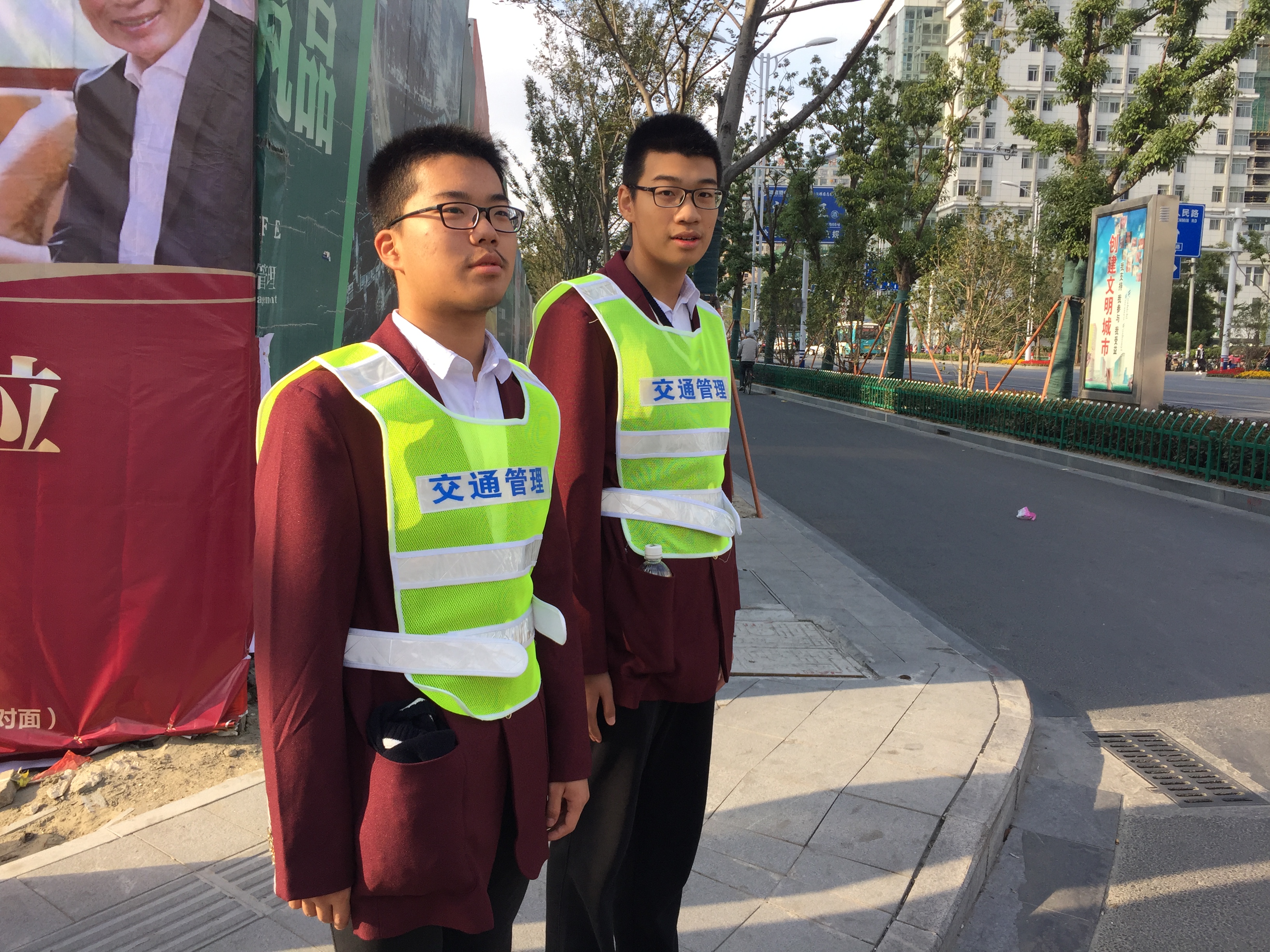 穿上了交通管理的服饰,同学们顿时感觉到了自己的责任,严肃且公正地完成自己的任务。在繁华的街口,风再大,也熄灭不了同学们那颗做好文明交通志愿者的火热之心。