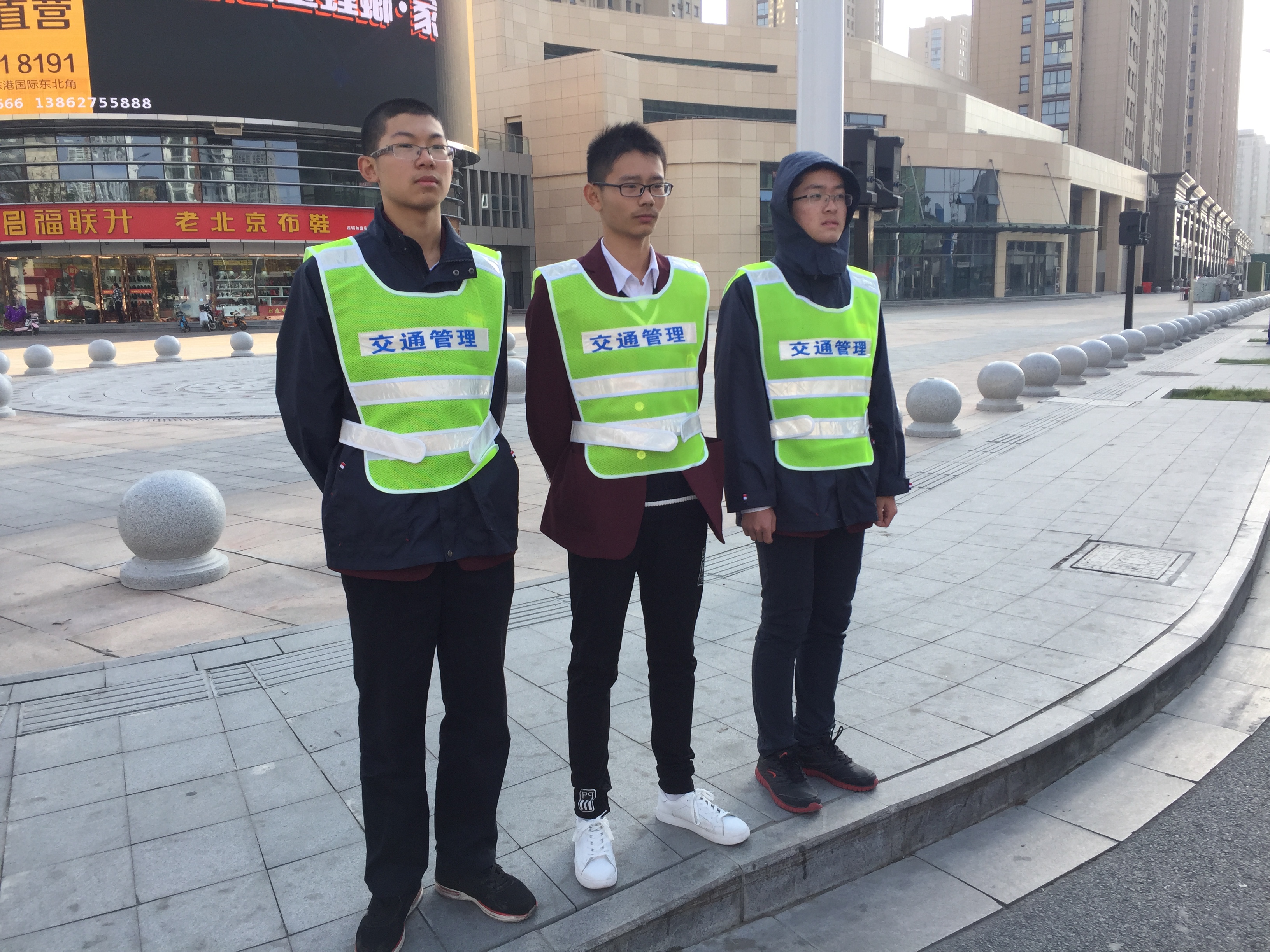 巾帼不让须眉,女同学们也在交通一线,顶着寒风,管理交通。