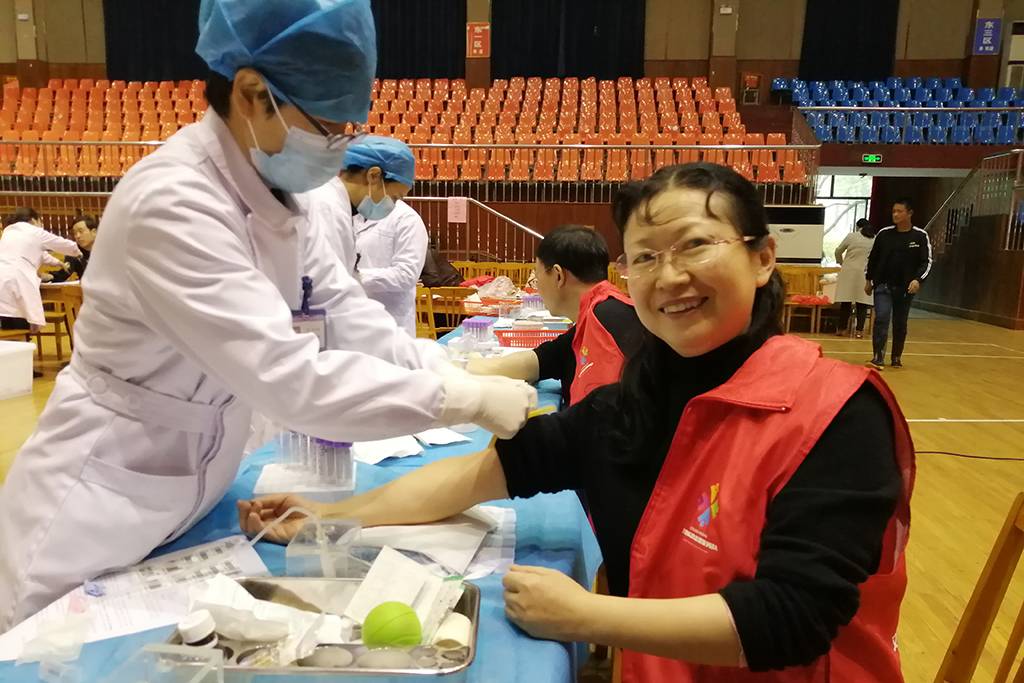 一大早,学校体艺馆和海安市人民医院血库的医务人员早早来到校体艺馆布置好了献血活动现场。教职工志愿者们在工作间隙络绎来到现场,在医务人员的引导下,排队有序参加“填表登记、测量血压、读卡确认、血液筛查”等献血环节。医务人员现场对自愿者抽取血样进行快速生化检验,筛选出符合献血标准的志愿者。最终大部分志愿者如愿献出了自己的一份爱心,少数因身体疲劳等原因暂时没有能完成献血的志愿者表示将按照科学献血的要求调整作息时间,一段时间后再去人民医院献血屋完成今年的献血心愿。志愿者们有的是初次献血,有的已是多次参加献血活动,还有的献血已经超过4000毫升,荣获江苏省无偿献血荣誉证书。闲谈中刚刚献完血的陈萍老师用最简洁、最朴实的话语道出了大家共同的心声:“献血是幸福的!”