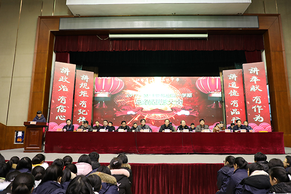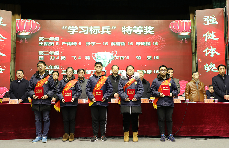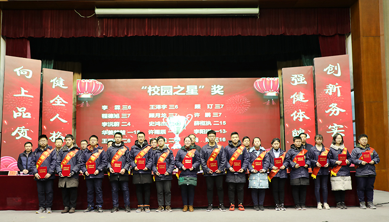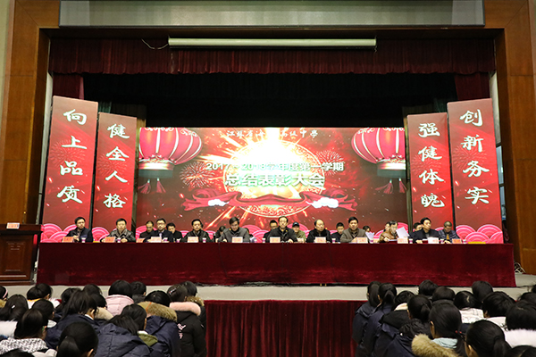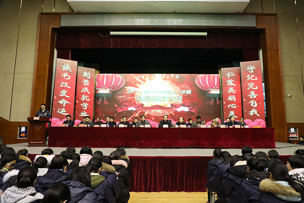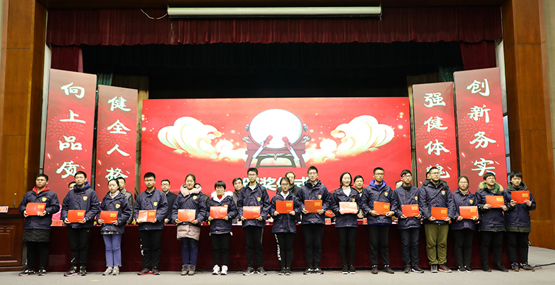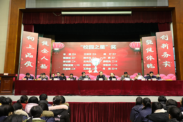 学校副校长吉传勇宣读了关于“优秀班集体”、“优秀班主任”、 “三好学生”、“学习标兵”、“优秀学生干部”的表彰决定。副校长董裕华宣读了关于对2017年度学科竞赛、体艺比赛、科技创新大赛等获奖学生的表彰决定和2017年度“校园之星”的评选结果。学校领导给获奖的老师和同学颁发了奖状和奖品。