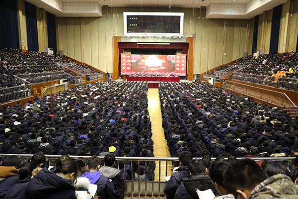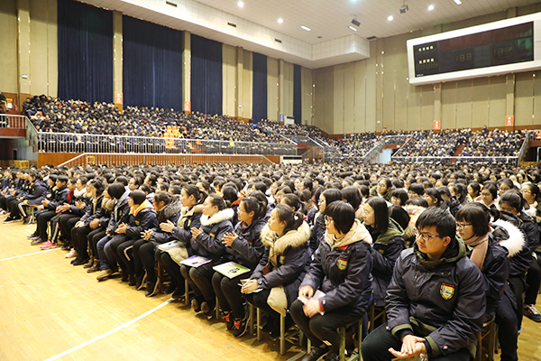吕校长提出2018年,我校将以习近平新时代中国特色社会主义思想为指导,全面贯彻落实党的十九大精神,把握新时代新机遇,立足新起点新目标,以“加速内涵发展,提升办学品位”为目标,坚持“为学生的终身发展奠基,为教师的幸福成长铺路”的办学宗旨。创新特色,精细管理,全面落实新型教育观,全面深化素质教育,加强教学研究,推进高效课堂,有效提升核心素养,促进学生全面发展,教学质量全省领先。力争小高考、高考再创辉煌。继续深化常规教育,行为规范力求实效,特色教育打造精品。创新阳光高中生的育人思路,推进“核心价值观”和“八礼四仪”教育。探索更加有效的育人模式和多元化的办学道路,办好高品质高中。