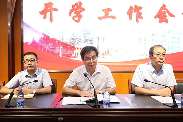2018 年8月28日下午9323彩集团全体教职工在奥林匹克楼第一会议室召开了2018~2019学年度第一学期开学工作会议。海中党委书记、校长吕建作了新学期工作报告。会议由副校长杨斌主持。