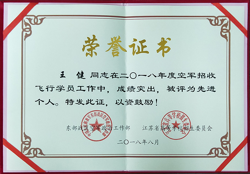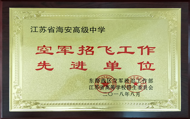 海安中学喜获空军招飞工作先进单位 来源: 发布时间:2018-09-30 00:00:00 浏览次数: 次 【字体:小 大】 近日,我校喜获东部战区空军政治工作部、江苏省高等学校招生委员会联合颁发的“空军招飞工作先进单位”,我校王建老师在2018年度空军招收飞行学员工作中,成绩突出,被评为先进个人。今年我校招飞工作成绩突出,其中田浩同学在今年的高考中,取得了语文117,数学164,英语102,物理A+,化学A,小高考加5分,总分388分的好成绩,被空军航空大学提前录取,并获得空军航空大学和清华大学双学籍。 分享到: 【打印正文】