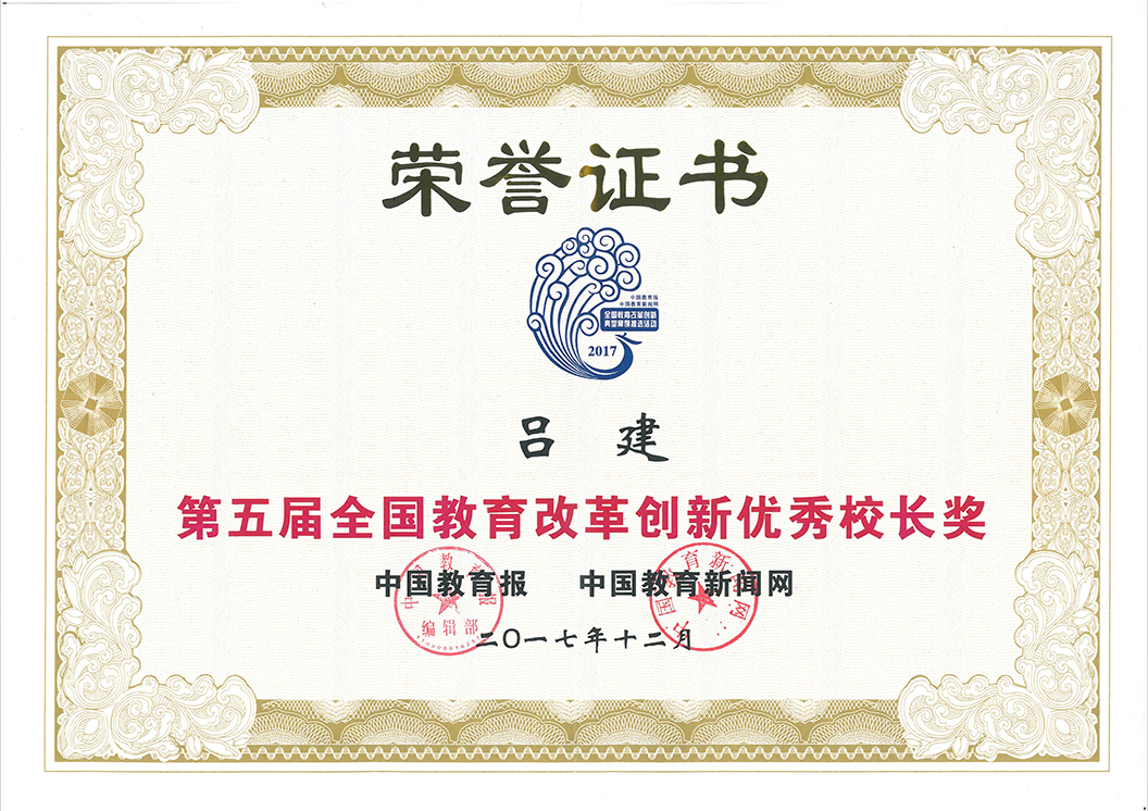 教育改革创新校长奖证书