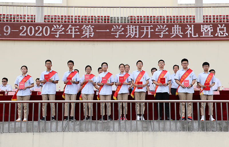 副校长董裕华宣读了学校表彰决定文件和嘉奖令,表彰了一大批优秀班集体、优秀班主任、三好学生、学习标兵、优秀学生干部、文明宿舍。同时对暑期刻苦训练的高一军训团,取得优异成绩的学校各类社团予以了表扬。董校长希望受表彰的先进个人和先进集体,再接再厉,争取在学习和工作中取得更大的成绩;希望其他班级和个人以他们为榜样,努力学习,勤奋工作,奋发有为,为海安中学在高品质发展道路上不断追求卓越努力奋斗!