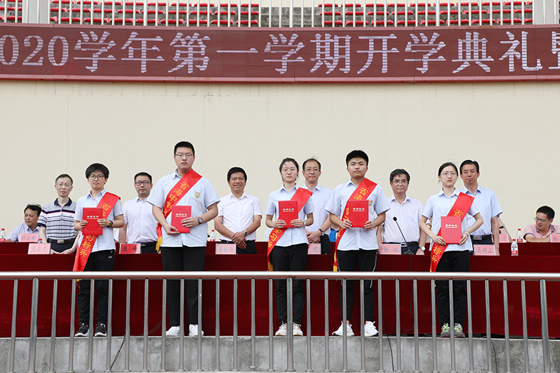 颁发原高一年级“三好学生”、“优秀学生干部”奖品。各班班长上台领奖