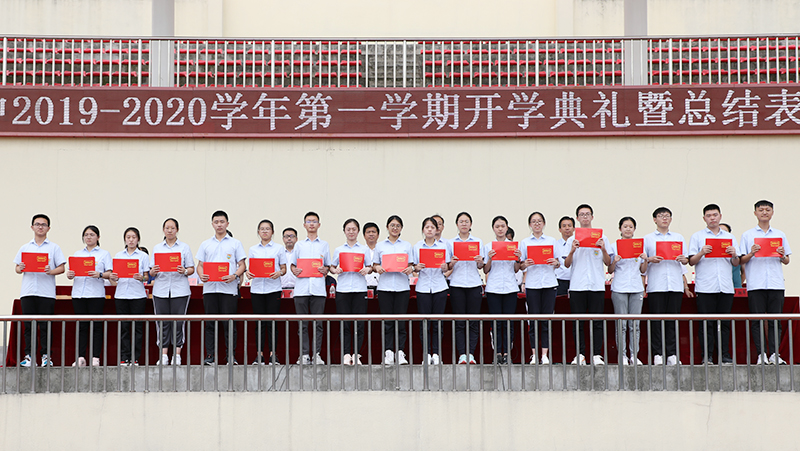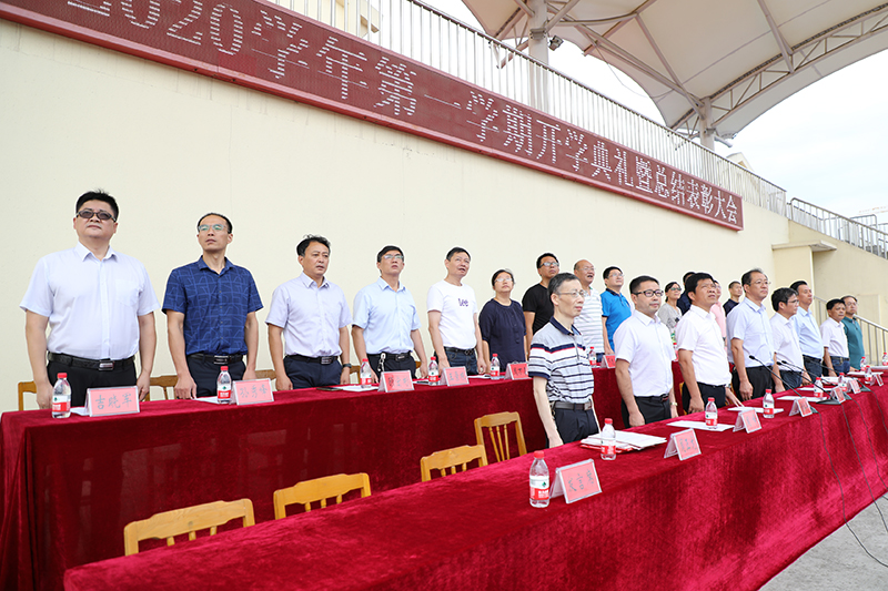 开学典礼暨总结表彰大会在全体师生深情高昂的《海中,我们的骄傲》校歌声中结束。