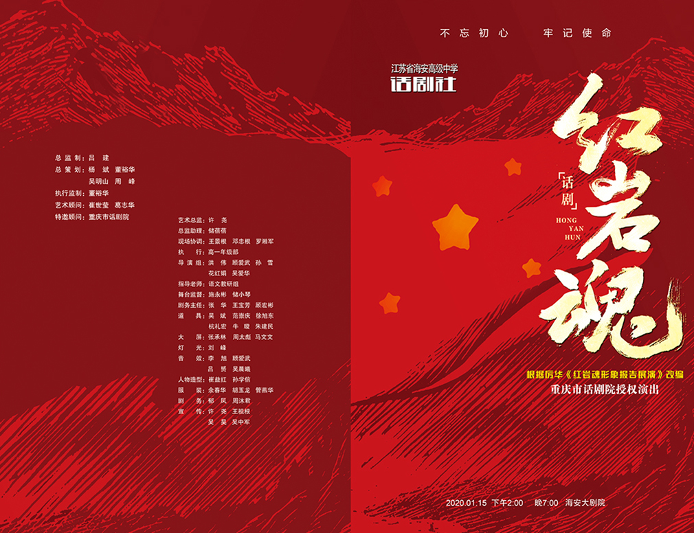 应中共海安市委、海安市人民政府邀请,1月15日下午和晚上,9323彩集团话剧社高一年级的社员们在市文化艺术中心再度献演了话剧《红岩魂》。