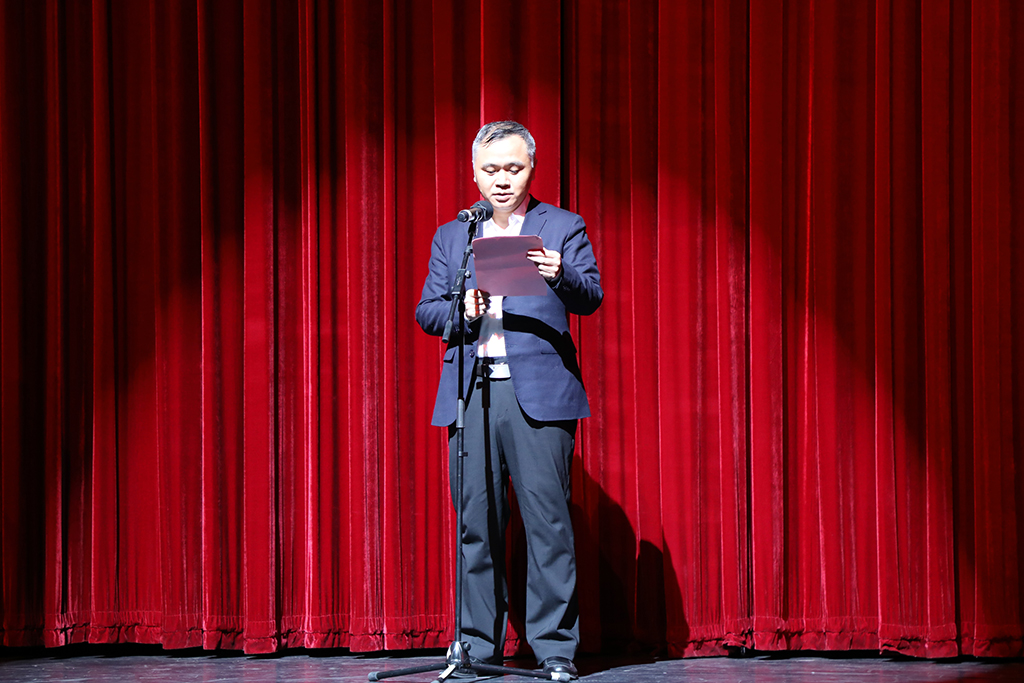 市政协主席李春旺,市委副书记张浩,市领导杨春红、屈祖平、丁兴育、彭晓红、赵剑波、周于红、市人民检察院检察长夏琪斌等与近千名市级机关部门党员干部代表共同观看了晚间场演出。市委副书记张浩致辞。