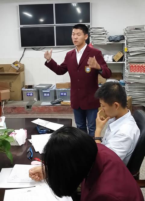 明哲思辨社中英文面试选拔成员,图为评委认真倾听、打分
