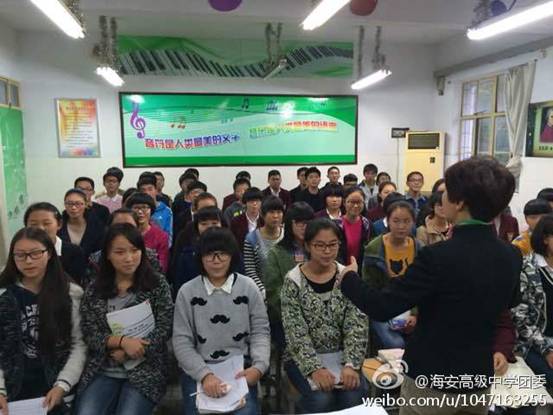 紧张排练结束后指导老师会心微笑(海中合唱团)