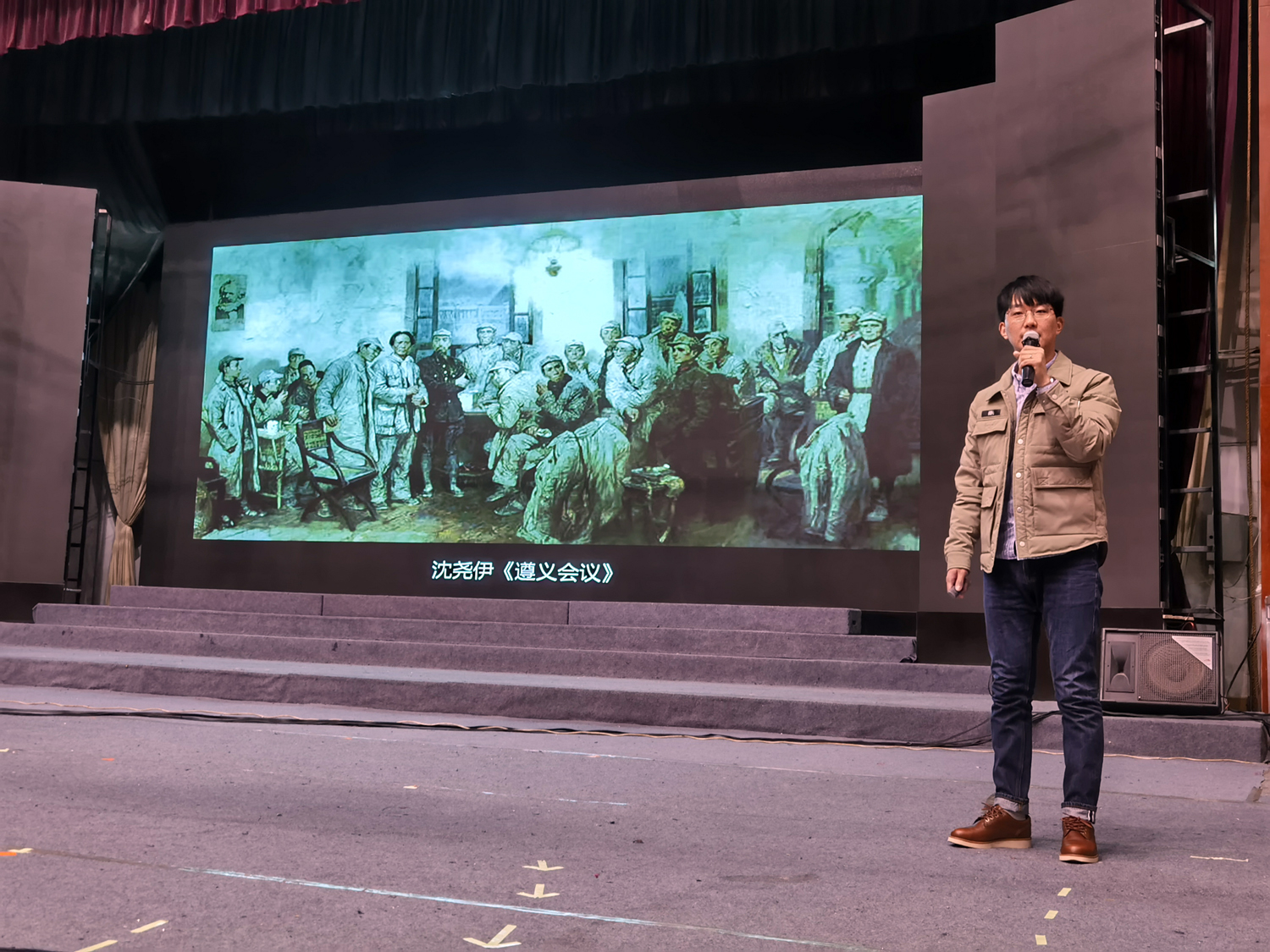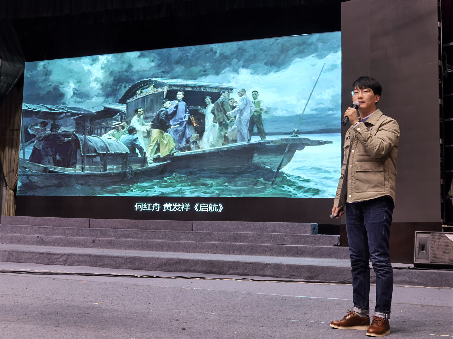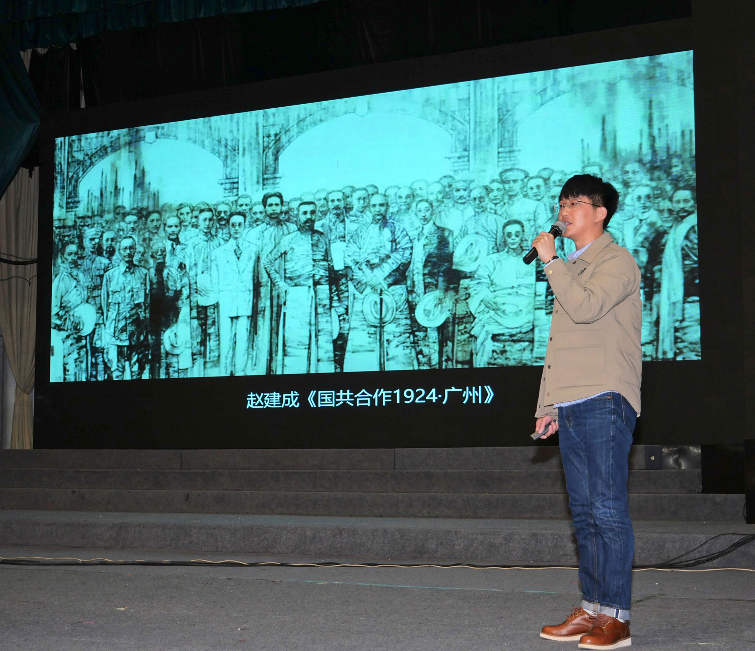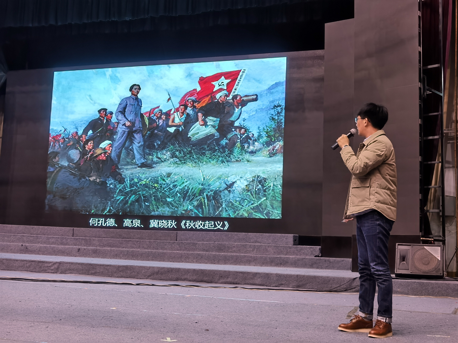 随后,刘伟从“共产主义为什么‘好’”和“中国共产党的成功密码”两方面,带领同学们进行了学习。通过观看视频、党史油画分享等方式,援引大量丰富而翔实的史料,带领大家走进百年党史中最鲜活、最生动的部分,梳理了我们党百年来艰辛的奋斗历程。夏明翰、赵一曼、张朝燮、王经燕……为革命事业抛头颅洒热血的烈士们的事迹,让大家深刻感悟党员“用鲜血铸就的信念与忠诚”;嘉兴红船、遵义会议、秋收起义……在共和国建立过程中我党的砥砺前行,让大家深入理解我党“超强的自我纠错能力”。