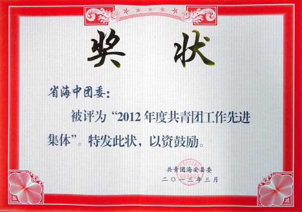 海安中学团委被评为“2012年度共青团工作先进集体”