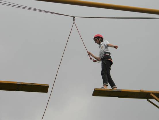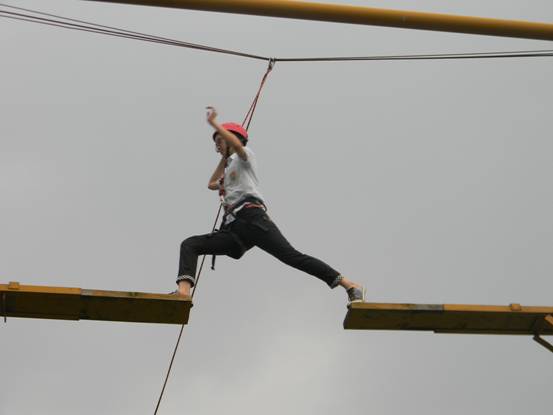 “高空断桥”这个项目也让大家耳目一新,在其他队员的鼓励和加油声中,所有成员都奋身一跃,到达断桥另外一侧,这项活动让大家体会到了“空中一小步,人生一大步”的意义,在人生的道路上遇到那些荆棘是在所难免的,而信念和勇气是进步的动力。
