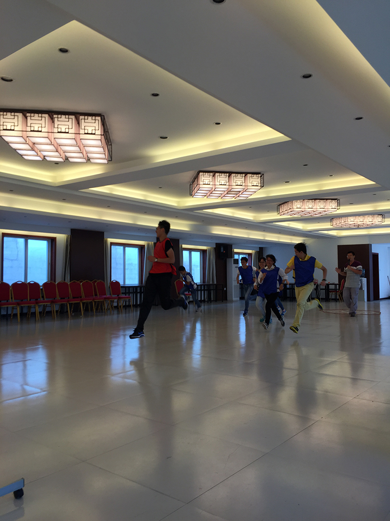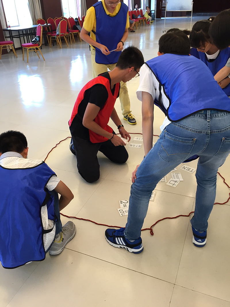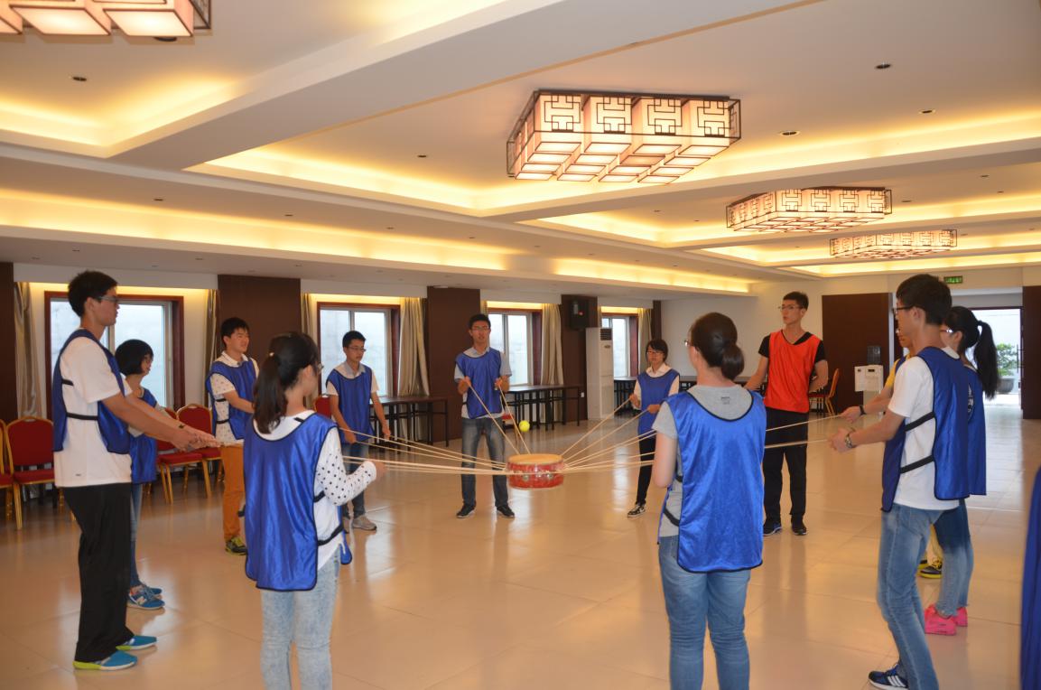 午餐后,外面骄阳依旧,同学们的训练场从室外转到了室内。大家体验了极速60秒、颠球击鼓等等几个项目,两组学员在组长的带领下,为了取得最后的胜利,纷纷开动脑筋,放手一搏。下午三点左右,学生会一行依依不舍地告别生态园训练基地。在这里,他们勇敢地挑战自己,学会了合作,学会了分享,收获颇丰;回到海中,他们将迈向自己坚实的未来。