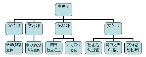 学生会主席团是学生会的最高组织,对校团委负责,统一管理下属的四个部门,合理安排监督各个部门的工作并受各部门监督。