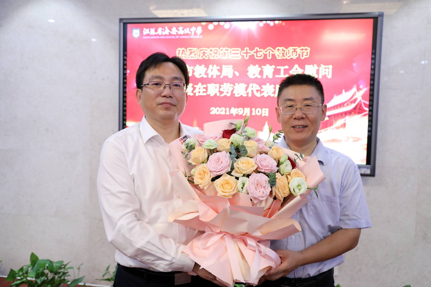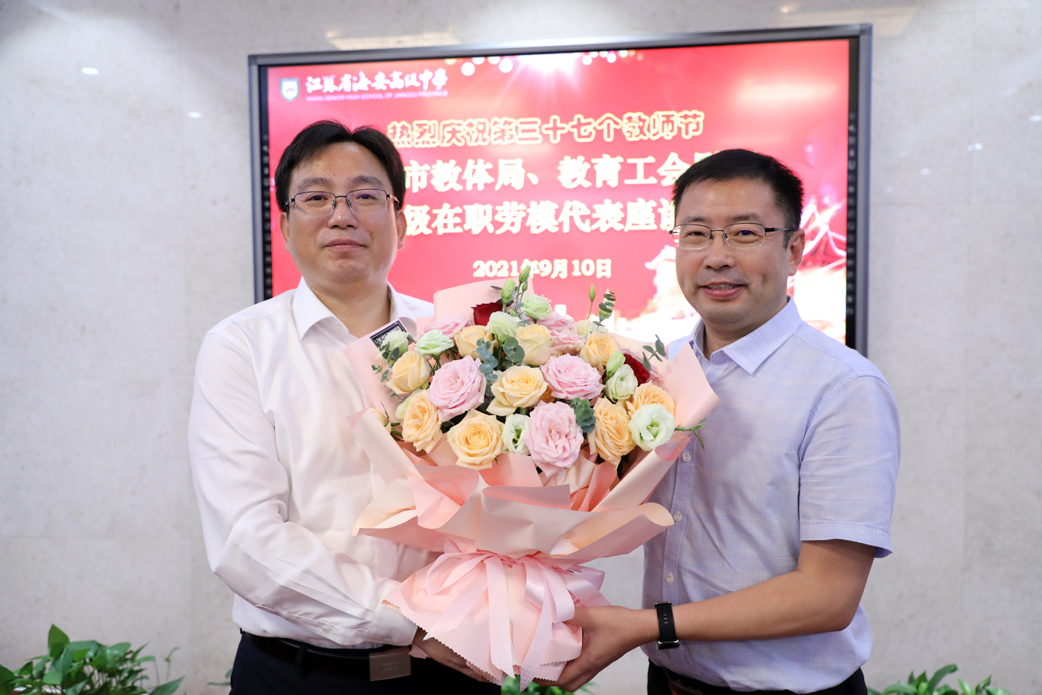 市教体局领导来海安中学慰问劳模代表