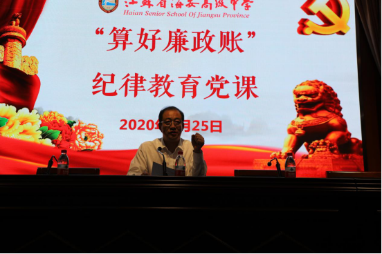 结合本月开展的“算好廉政账”专题教育月活动,吕建书记为全体党员上了一节“算好廉政账”纪律教育党课。吕建书记从要强化“对党忠诚”的坚定自觉,坚守“为民服务”的根本宗旨,筑牢“规范用权”的从政底线,要涵养“清廉自守”的高尚情操,要担起“管党治党”的政治责任等几个方面要求全体党员教师廉洁从教,立德育人,树立良好的师德形象。