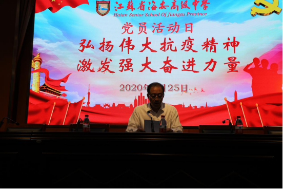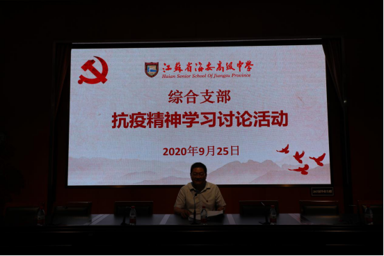 在集体活动中,吕建书记首先就“《习近平谈治国理政》第三卷:全面贯彻新时代中国特色社会主义思想和基本方略”这一章节做了专题学习讲座。吕建书记要求全体党员教师要牢固树立始终坚持党对一切工作的领导意识,坚持办人民满意教育;要始终坚持全面深化教育改革,坚持创新发展理念,努力建成高品质示范高中。要坚持依法治教、依法治校,用制度建设带动学校事业的全面发展。要以立德树人为根本任务,强化社会主义核心价值观教育、八礼四仪教育、劳动教育、体育和美育,全方位育人,全面育人。接着全体党员一起学习了9月8日习近平总书记在全国抗击新冠肺炎疫情表彰大会上的讲话,吕建书记要求全体党员同志不仅要认真学习和领悟习近平总书记讲话精神,更要把学习和贯彻落实到我们的教育教学实践中去。紧接着吕建书记海引领大家一起学习了江苏省委常委会9月11日会议精神,吕建书记要求各部门、各年级要挖掘抗疫英雄的先进典型进行学习,要把学习内化为行动。