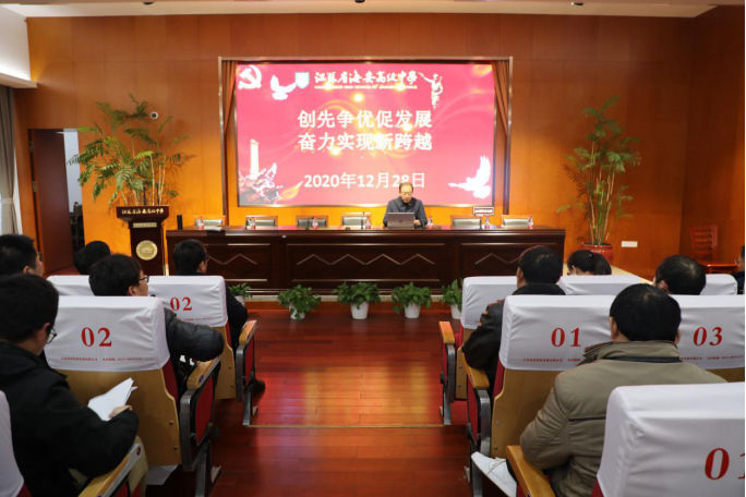 2020年12月28日下午,我校党委在奥林匹克楼一楼第一会议举行了以“创先争优促发展,奋力实现新跨越 ”为主题的党员统一活动日活动。活动由学校党委书记、校长吕建主持,党委班子成员以及全体党员参加了会议。