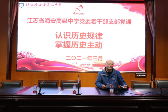 学校党委委员、总务主任张华为老干部支部上题为《认识历史规律、掌握历史主动》的党课
