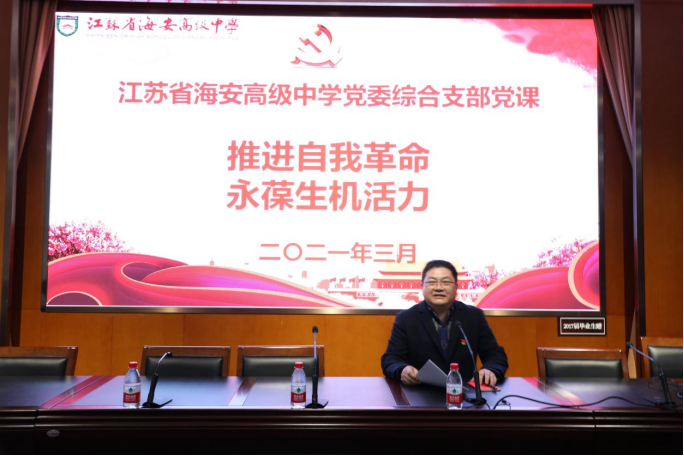 学校党委委员、校办主任刘建东为综合支部上题为《推进自我革命永葆生机活力》的党课
