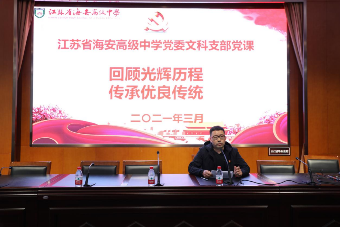学校党委委员、副校长周峰为文科支部上题为《回顾光辉历程传承优良传统》的党课